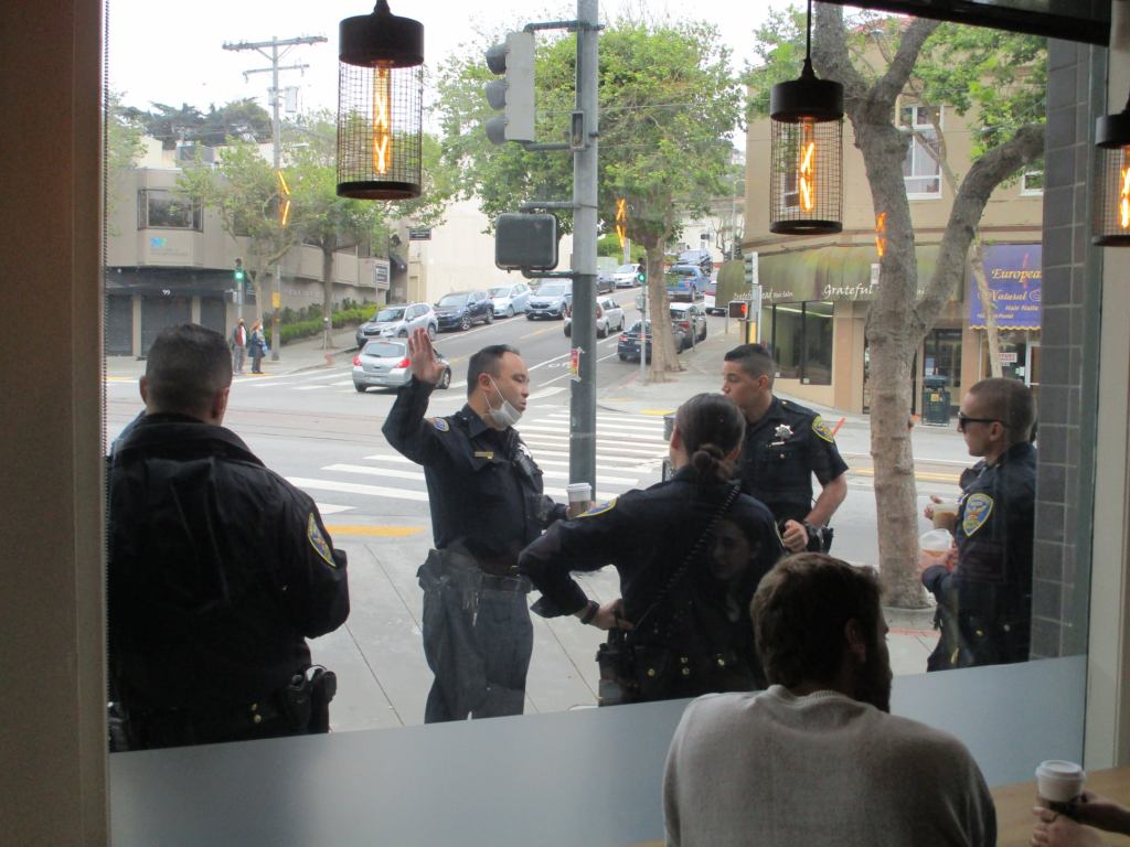 SF’s finest outside Starbucks West Portal, San Francisco, July 2021 Image • July 31, 2021 • zontaphotos Share this: Share on X (Opens in new window) X Share on Facebook (Opens in new window) Facebook Share on LinkedIn (Opens in new window) LinkedIn Like Loading... Related