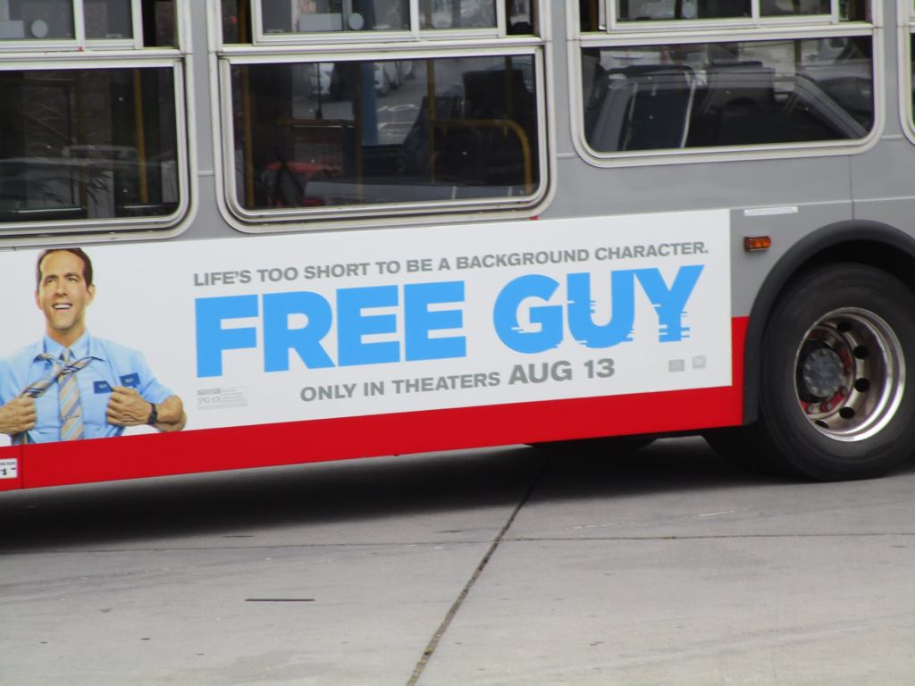 “Free Guy” on Muni bus at Phelan Loop, San Francisco, August 2021 Image • August 12, 2021 • zontaphotos Share this: Share on X (Opens in new window) X Share on Facebook (Opens in new window) Facebook Share on LinkedIn (Opens in new window) LinkedIn Like Loading... Related