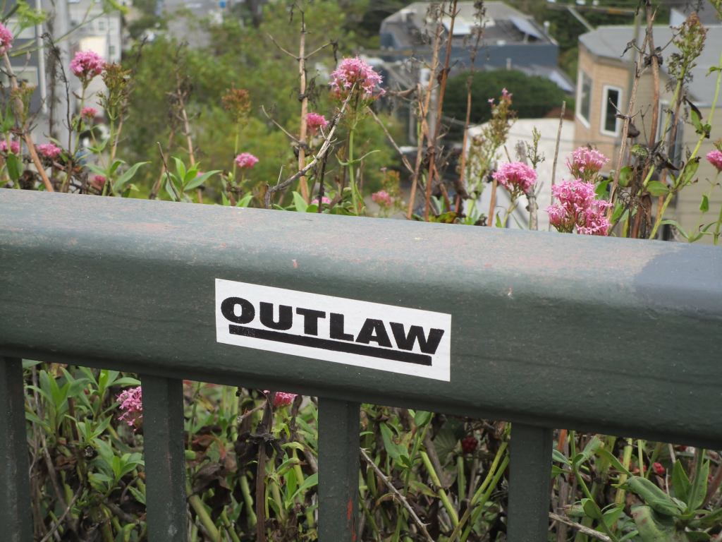 “Outlaw” on Market Street railing, San Francisco, August 2021 Image • September 4, 2021 • zontaphotos Share this: Share on X (Opens in new window) X Share on Facebook (Opens in new window) Facebook Share on LinkedIn (Opens in new window) LinkedIn Like Loading... Related