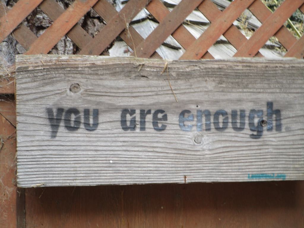 “you are enough” sign, San Francisco, August 2021 Image • September 5, 2021 • zontaphotos Share this: Share on X (Opens in new window) X Share on Facebook (Opens in new window) Facebook Share on LinkedIn (Opens in new window) LinkedIn Like Loading... Related