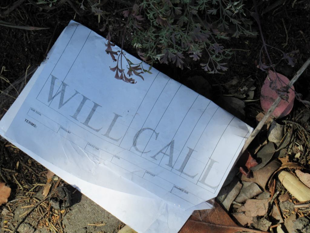 A promise of “Will Call” on San Francisco sidewalk, March 2022 Image • March 29, 2022 • zontaphotos Share this: Share on X (Opens in new window) X Share on Facebook (Opens in new window) Facebook Share on LinkedIn (Opens in new window) LinkedIn Like Loading... Related