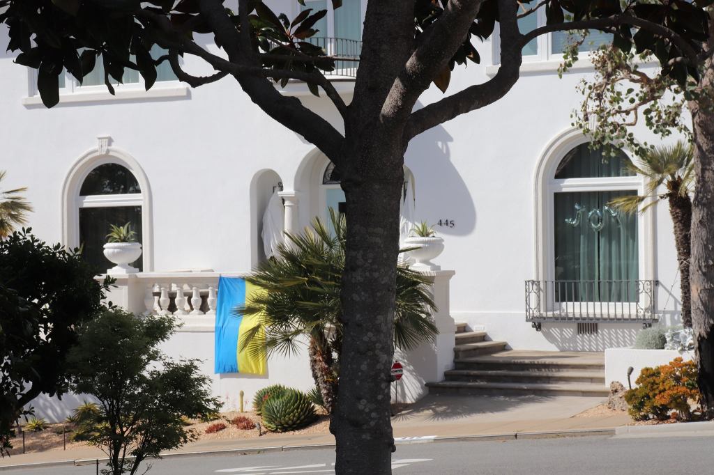 Ukrainian flag draped in front of house on Darien Way, San Francisco, April 2022 Image • April 13, 2022 • zontaphotos Share this: Share on X (Opens in new window) X Share on Facebook (Opens in new window) Facebook Share on LinkedIn (Opens in new window) LinkedIn Like Loading... Related