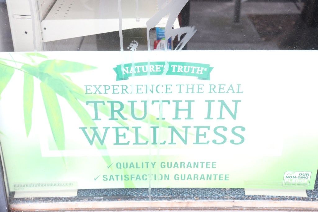 Truth in Wellness ad from “Nature’s Truth” brand in San Francisco store, August 2022 Image • September 2, 2022 • zontaphotos Share this: Share on X (Opens in new window) X Share on Facebook (Opens in new window) Facebook Share on LinkedIn (Opens in new window) LinkedIn Like Loading... Related