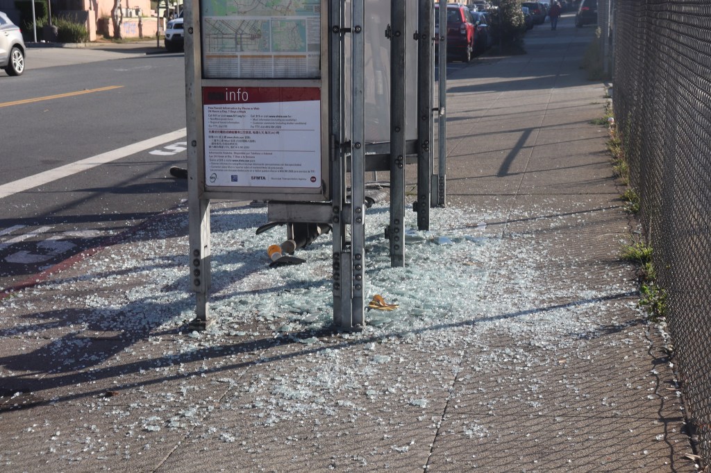 Therapeutic glass breaking at Plymouth and Ocean Avenues, San Francisco, October 2022 Image • November 13, 2022November 13, 2022 • zontaphotos Share this: Share on X (Opens in new window) X Share on Facebook (Opens in new window) Facebook Share on LinkedIn (Opens in new window) LinkedIn Like Loading... Related