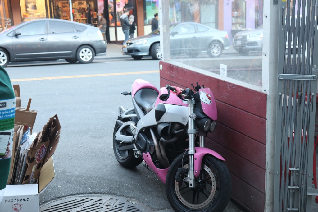 Pinkish motorcycle on Castro Street, San Francisco, October 2022 Image • November 18, 2022November 18, 2022 • zontaphotos Share this: Share on X (Opens in new window) X Share on Facebook (Opens in new window) Facebook Share on LinkedIn (Opens in new window) LinkedIn Like Loading... Related