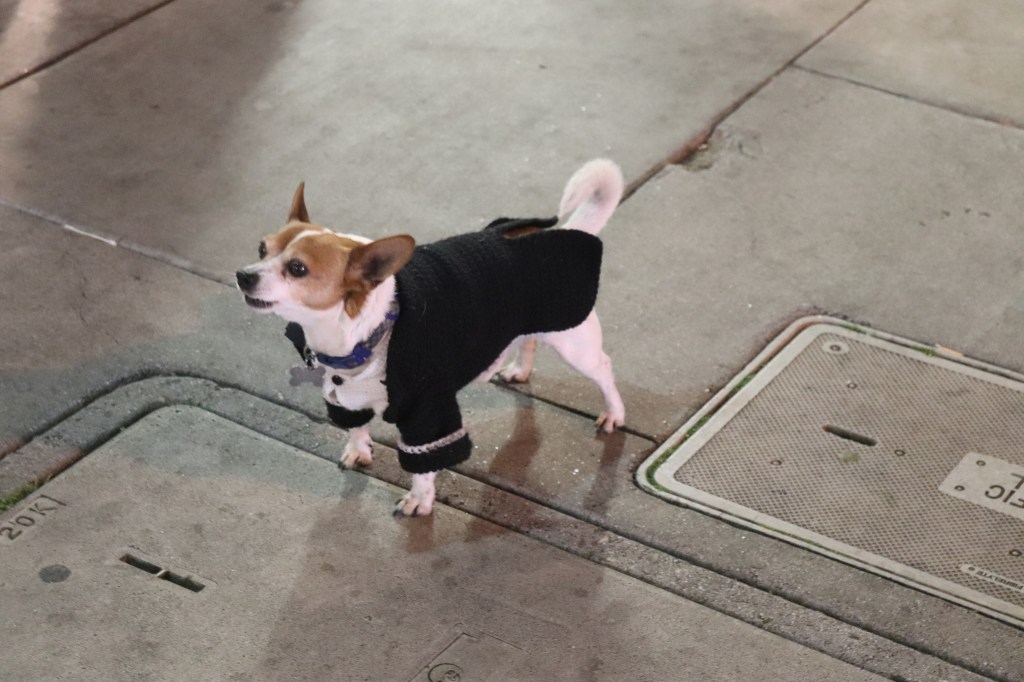 Trés chic outfit for noisy little mutt, San Francisco, November 2022 Image • November 23, 2022 • zontaphotos Share this: Share on X (Opens in new window) X Share on Facebook (Opens in new window) Facebook Share on LinkedIn (Opens in new window) LinkedIn Like Loading... Related