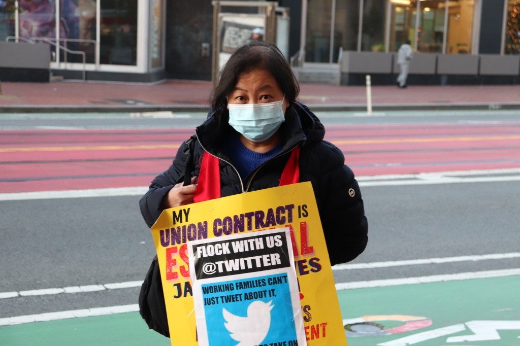 Striking janitorial worker at Twitter on Market Street, San Francisco, December 2022 Image • December 31, 2022December 31, 2022 • zontaphotos Share this: Share on X (Opens in new window) X Share on Facebook (Opens in new window) Facebook Share on LinkedIn (Opens in new window) LinkedIn Like Loading... Related