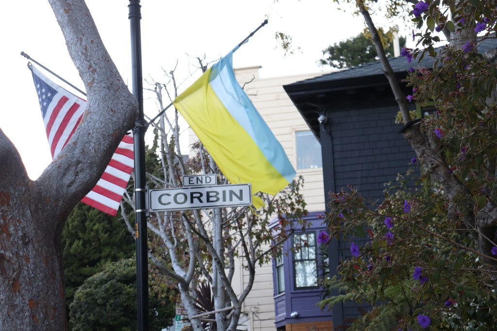 Ukraine and American flags off Corbin Stairs, San Francisco, February 2023 Image • March 4, 2023 • zontaphotos Share this: Share on X (Opens in new window) X Share on Facebook (Opens in new window) Facebook Share on LinkedIn (Opens in new window) LinkedIn Like Loading... Related