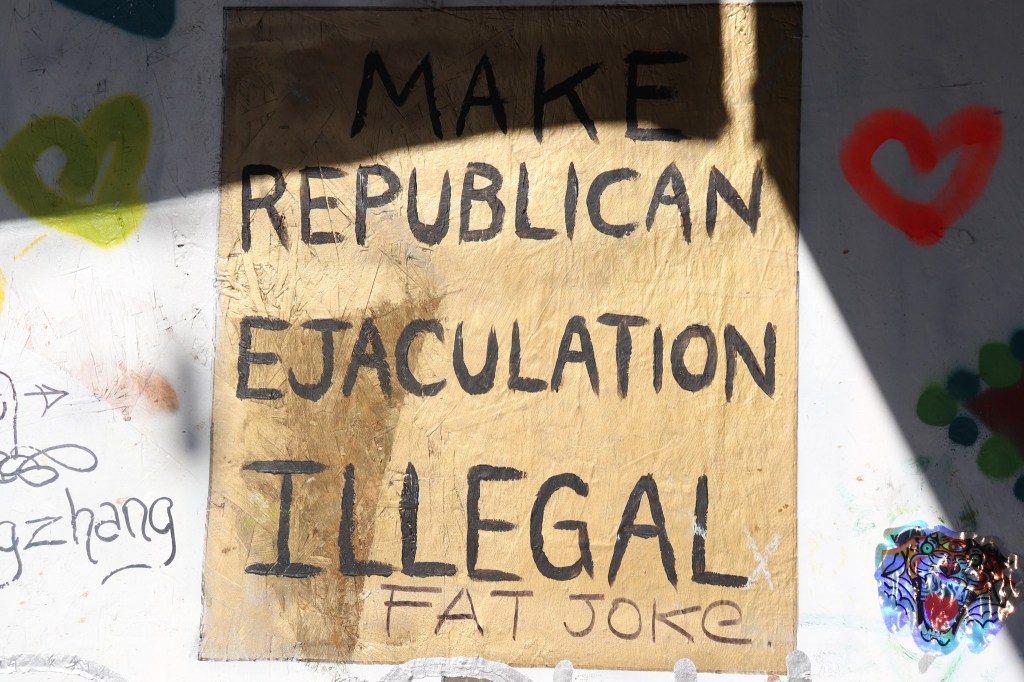 “Make Republican Ejaculation Illegal” poster on Castro Street, San Francisco, June 2023 Image • July 4, 2023 • zontaphotos Share this: Share on X (Opens in new window) X Share on Facebook (Opens in new window) Facebook Share on LinkedIn (Opens in new window) LinkedIn Like Loading... Related