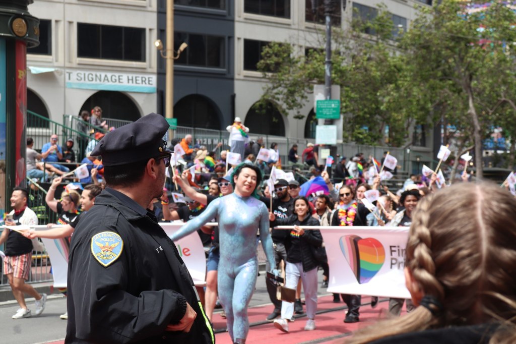 Reveler in blue at Gay Pride parade on Market Street, San Francisco, June 2023 Image • July 16, 2023 • zontaphotos Share this: Share on X (Opens in new window) X Share on Facebook (Opens in new window) Facebook Share on LinkedIn (Opens in new window) LinkedIn Like Loading... Related