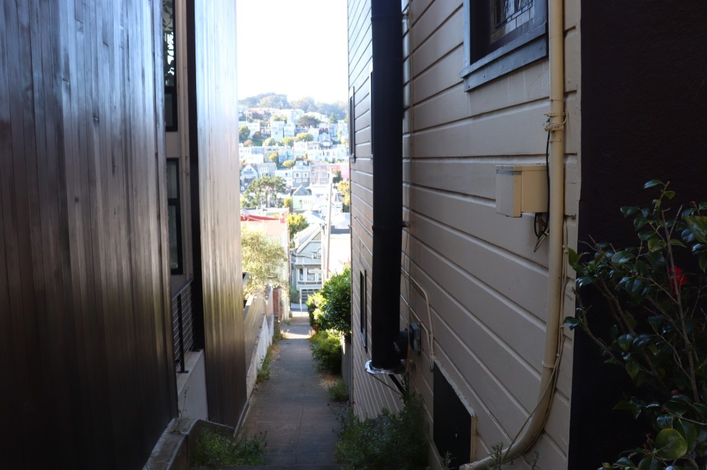 Looking down San Francisco alleyway, July 2023 Image • August 7, 2023 • zontaphotos Share this: Share on X (Opens in new window) X Share on Facebook (Opens in new window) Facebook Share on LinkedIn (Opens in new window) LinkedIn Like Loading... Related