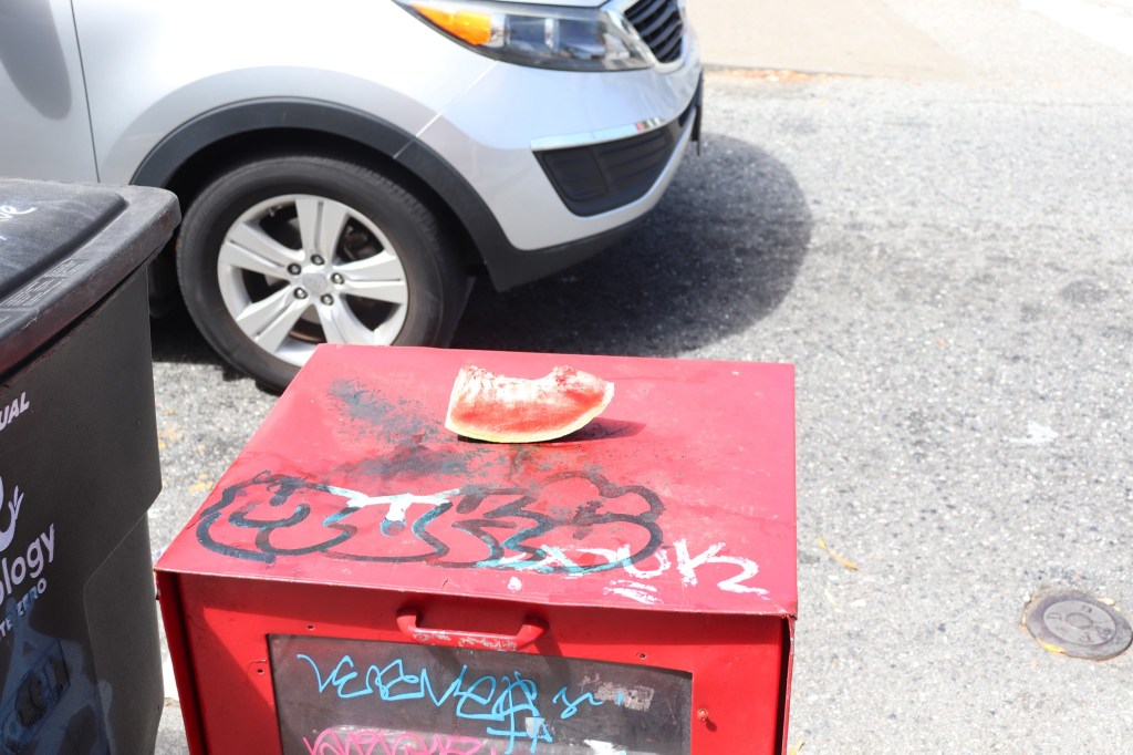 Watermelon slice on top of empty news rack on Ocean Avenue, San Francisco, August 2023 Image • August 14, 2023August 15, 2023 • zontaphotos Share this: Share on X (Opens in new window) X Share on Facebook (Opens in new window) Facebook Share on LinkedIn (Opens in new window) LinkedIn Like Loading... Related