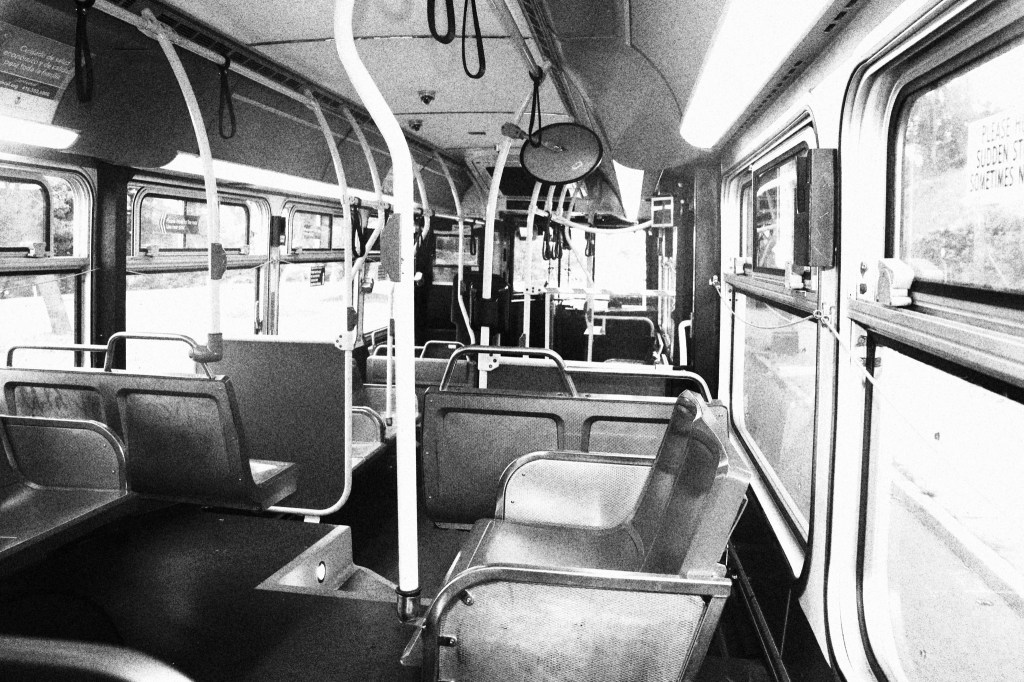 Inside Muni bus, San Francisco, August 2023 (black & white) Image • September 8, 2023 • zontaphotos Share this: Share on X (Opens in new window) X Share on Facebook (Opens in new window) Facebook Share on LinkedIn (Opens in new window) LinkedIn Like Loading... Related