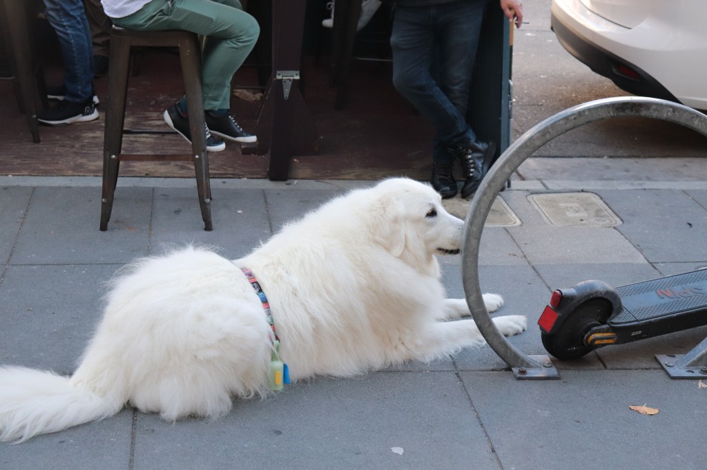 Big white dog on Ocean Avenue, San Francisco, September 2023 Image • September 13, 2023 • zontaphotos Share this: Share on X (Opens in new window) X Share on Facebook (Opens in new window) Facebook Share on LinkedIn (Opens in new window) LinkedIn Like Loading... Related