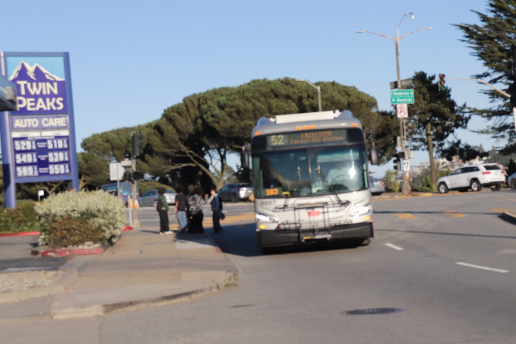 Muni #52 passes gas station on Woodside Avenue, San Francisco, September 2023 Image • September 17, 2023 • zontaphotos Share this: Share on X (Opens in new window) X Share on Facebook (Opens in new window) Facebook Share on LinkedIn (Opens in new window) LinkedIn Like Loading... Related