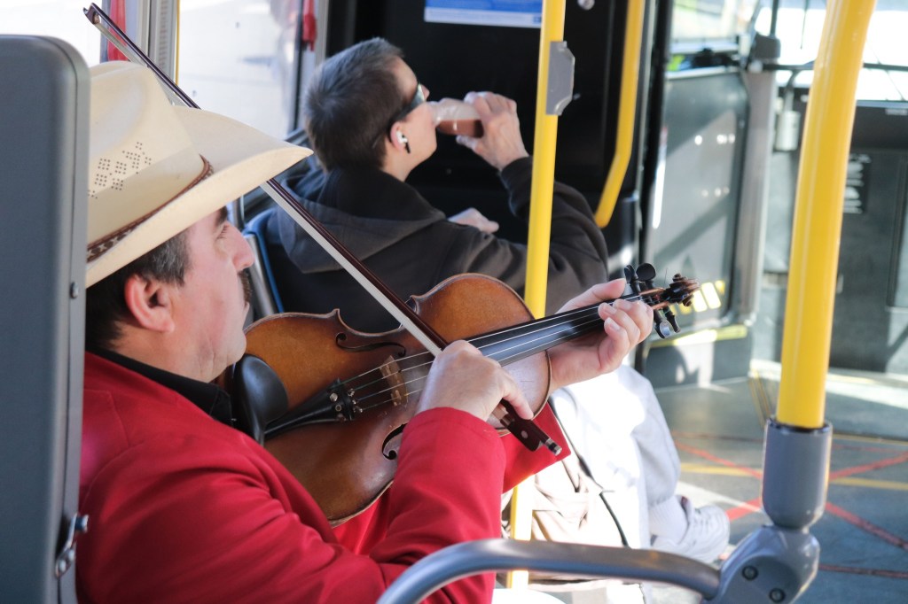 Mariachi violinist tunes up on #49 Muni, San Francisco, November 2023 Image • December 4, 2023 • zontaphotos Share this: Share on X (Opens in new window) X Share on Facebook (Opens in new window) Facebook Share on LinkedIn (Opens in new window) LinkedIn Like Loading... Related