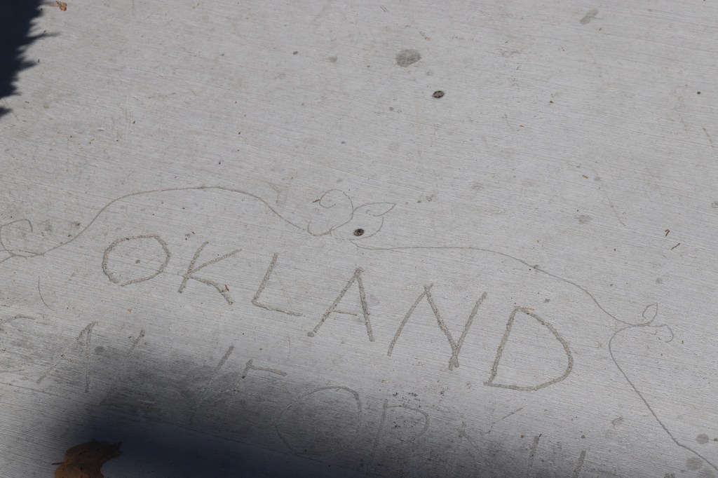 “OKLAND” on Oakland sidewalk, August 2024 Image • August 20, 2024 • zontaphotos Share this: Share on X (Opens in new window) X Share on Facebook (Opens in new window) Facebook Share on LinkedIn (Opens in new window) LinkedIn Like Loading... Related