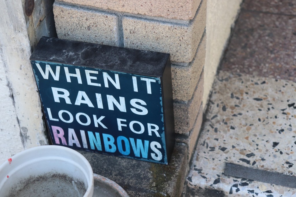 “When It Rains Look for Rainbows” on San Francisco porch, August 2024 Image • August 30, 2024 • zontaphotos Share this: Share on X (Opens in new window) X Share on Facebook (Opens in new window) Facebook Share on LinkedIn (Opens in new window) LinkedIn Like Loading... Related