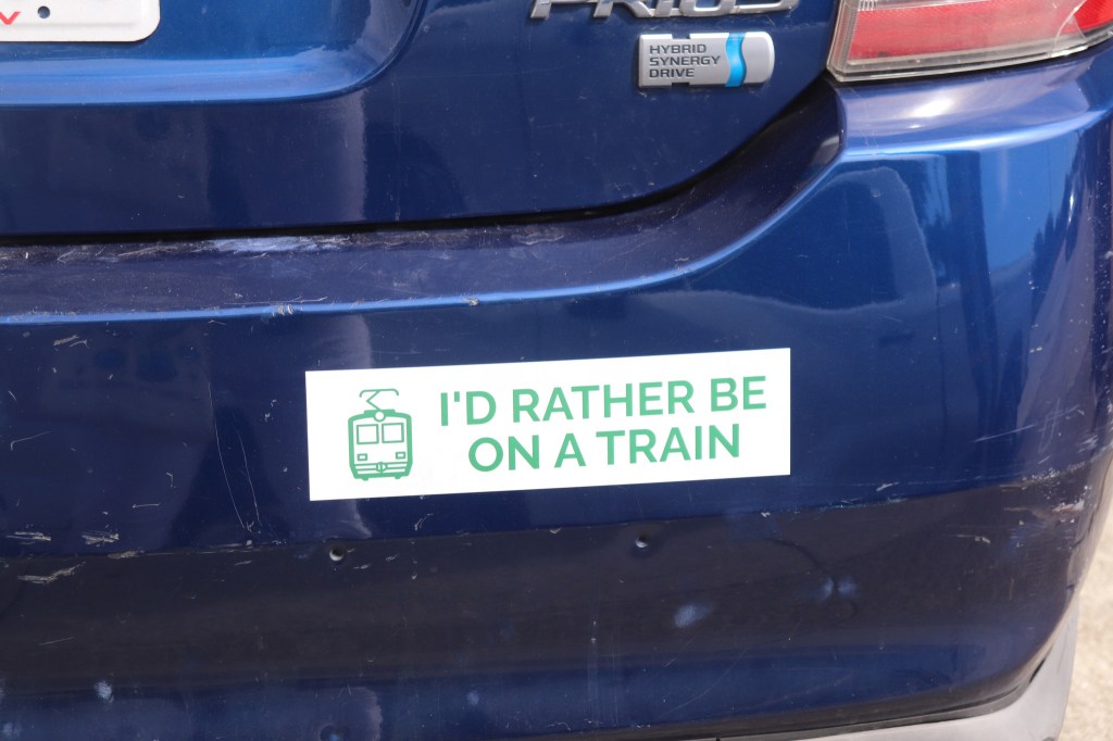 “I’d Rather Be On A Train” bumper sticker, San Francisco, August 2024 Image • September 15, 2024 • zontaphotos Share this: Share on X (Opens in new window) X Share on Facebook (Opens in new window) Facebook Share on LinkedIn (Opens in new window) LinkedIn Like Loading... Related