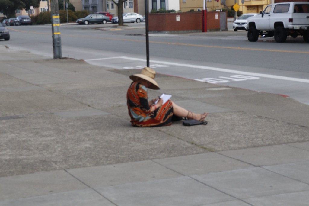 Woman sitting on the sidewalk, San Francisco, October 2024 Image • November 9, 2024 • zontaphotos Share this: Share on X (Opens in new window) X Share on Facebook (Opens in new window) Facebook Share on LinkedIn (Opens in new window) LinkedIn Like Loading... Related