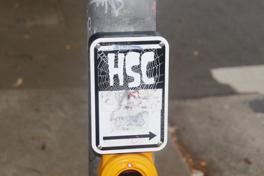 “HSC” at San Francisco crosswalk, November 2024 Image • November 18, 2024 • zontaphotos Share this: Click to share on X (Opens in new window) X Click to share on Facebook (Opens in new window) Facebook Click to share on LinkedIn (Opens in new window) LinkedIn Like Loading... Related