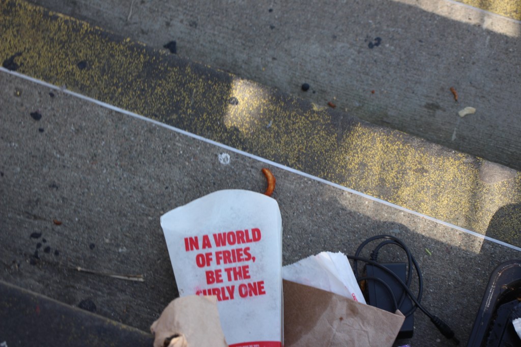“In a world of fries…” at J Muni stop in Glen Park, San Francisco, March 2025 Image • April 3, 2025 • zontaphotos Share this: Share on X (Opens in new window) X Share on Facebook (Opens in new window) Facebook Share on LinkedIn (Opens in new window) LinkedIn Like Loading... Related