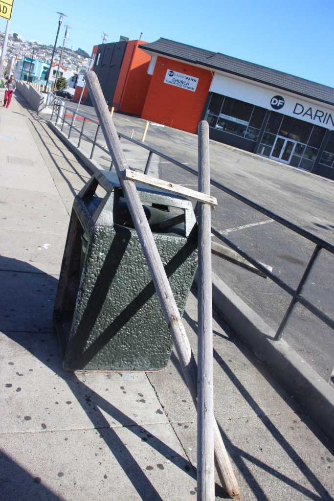 Sticks of trash at San Jose and Ocean Avenues, San Francisco, October 2025 Image • October 17, 2025 • zontaphotos Share this: Share on X (Opens in new window) X Share on Facebook (Opens in new window) Facebook Share on LinkedIn (Opens in new window) LinkedIn Like Loading... Related
